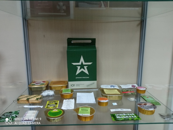 – Набор продуктов из индивидуального рациона питания российских военнослужащих.