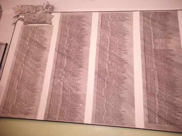 Информационный стенд содержит фотографии и краткие сведения о земляках-героях Великой Отечественной войны 1941-1945 гг., их подвигах, боевом пути.